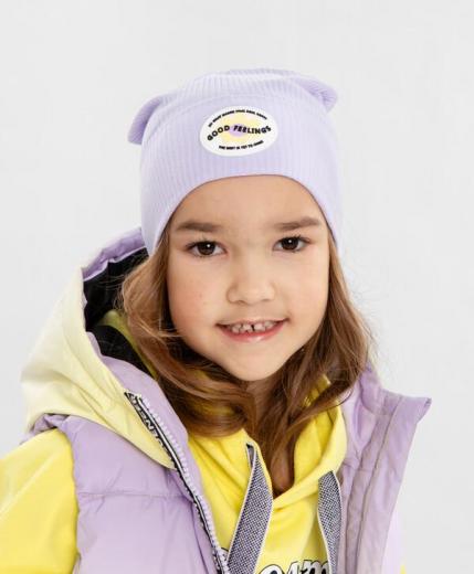 Button Blue Шапка бини с подворотом сиреневая для девочки (56)