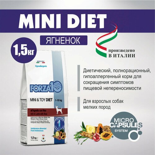 Forza10 Сухой корм для собак Mini Diet гипоаллергенный с ягнёнком и рисом, 1.5 кг