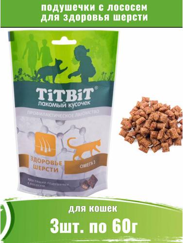 Мнямс TiTBiT 3шт х 60г хрустящие подушечки для кошек с лососем для здоровья шерсти