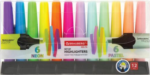 Brauberg Набор текстовыделителей 12 шт., "DELTA", линия 1-5 мм, 151737