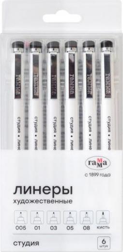 Гамма Набор линеров "Студия" черные, 6шт, 0,05/0,1/0,3/ 0,5/0,8/1,0мм 4600395056888