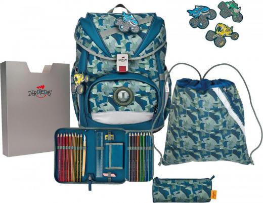 DerDieDas Ранец школьный с наполнением легкий ортопедический ErgoFlex Buttons "Монстр Трак" 800г, 6 предметов