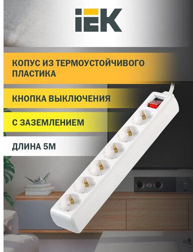 ИЭК Удлинитель У06К-выкл. 6 мест 2P+PE/5м 3х1мм2 16А/250В, цена за 1 шт