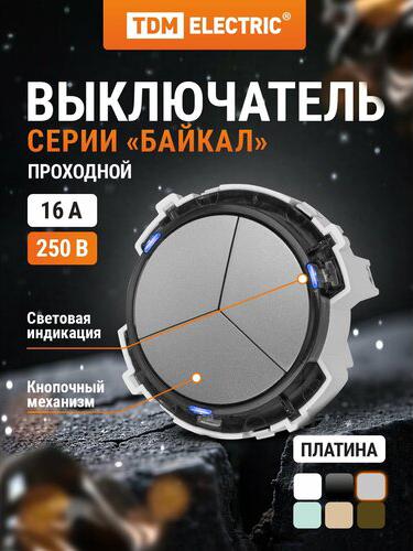 TDM Electric Выключатель 3-кл. 16А 250В проходной кнопочный механизм платина, Байкал, цена за 1 шт