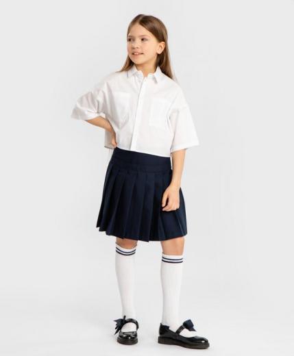 Button Blue Юбка плиссе в крупную складку синяя (158)